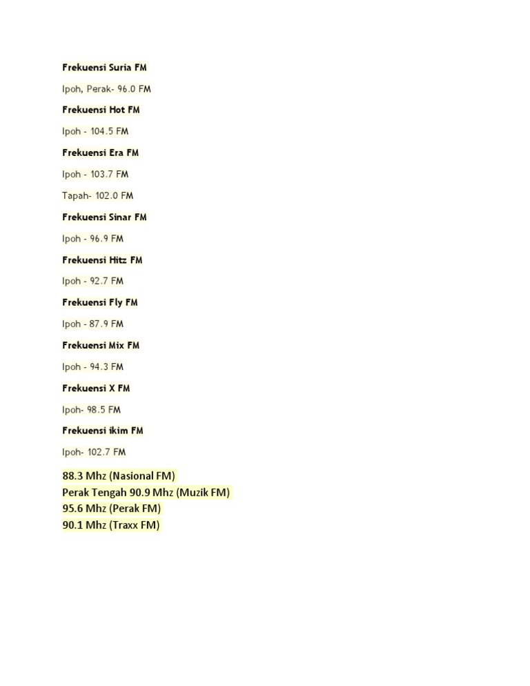 Heard Think Feel Write Senarai Frekuensi Radio Di Malaysia